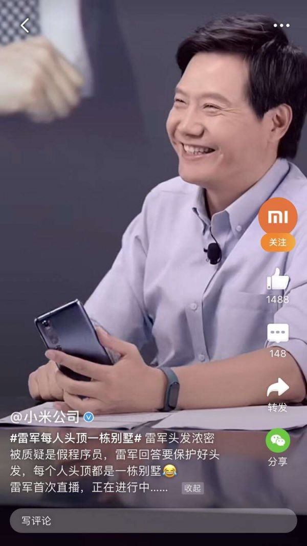 直播时,雷军不断和网友互动,网友纷纷留言:“雷总的头发是怎么保养的,程序员头发都掉光了。”雷军直言因自己头发浓密被质疑是假程序员,雷军提醒大家要保护好头发,植发很贵的,每个人头顶都是一栋别墅。