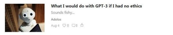 Adolos最后一篇文章的标题意味深长——为“如果我没有道德,我将如何使用GPT-3”,文章用假设的方式描述了他的整个实验项目。同一天,他还在自己真正的博客上发表了一篇更直接的自白,结束了这个项目。