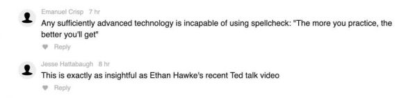 甚至有读者读后留言称,“好文!和Ethan Hawke在Ted的演讲一样深刻”。