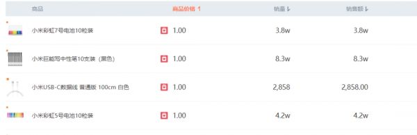 虽然销量很高,但是销售额低。直播中雷军自己也说,7号电池4万份,亏了60万,巨能写中性笔,又送了120万。不过同时他强调了,“礼物”这个概念,这些产品是十周年小米送给大家的一份小礼物。