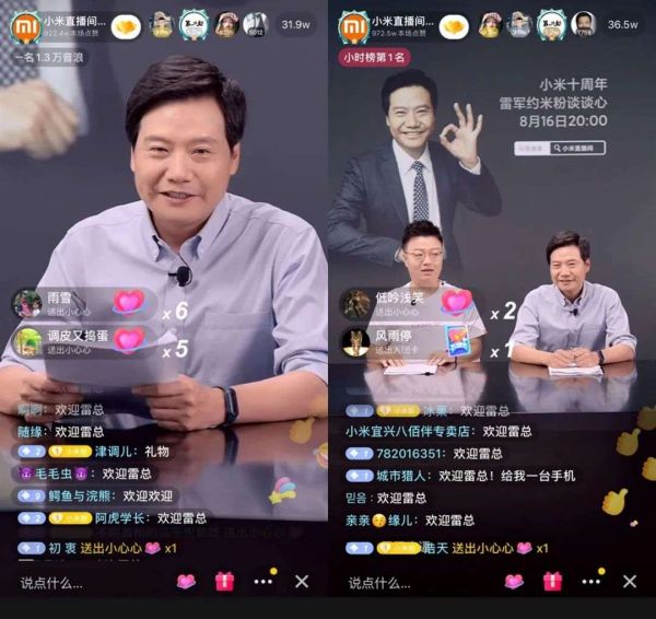 打败罗永浩的,是另一个科技企业老板,雷军。周日,雷军带着小米10等首发新品开播。