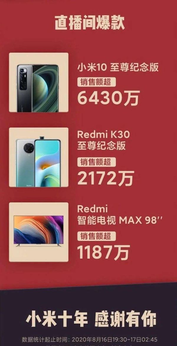 没问题,安排上。这次雷军直播,除了新品小米10至尊纪念版手机占据榜首之外,这台标价19999元、尺寸大到98寸的智能电视,以1187万销售额冲进TOP 3。