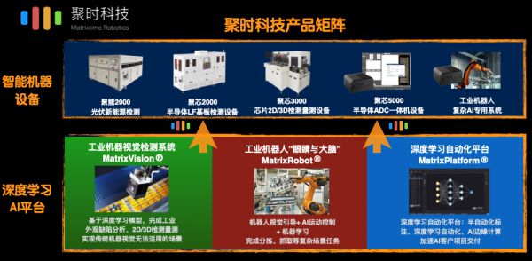 成立两年来,聚时科技的产品矩阵已经涵盖AI基础平台、工业软件、专用设备等三个层面。目前已经发布了工业机器视觉平台MatrixVision®、工业机器人视觉与AI控制系统MatrixRobot®、深度学习自动化平台MatrixPlatform®和系列工业软件产品。