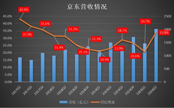 徐雷没有辜负刘强东的信任。昨日晚间,京东发布了2020年第二季度财务业绩,报告显示,京东在营收、利润、活跃用户数等核心指标上均实现不同程度增长。其中,净收入2011亿元人民币,同比增长33.8%,非美国通用会计准则下归属于普通股股东的净利润为59亿元,同比增长66.1%。