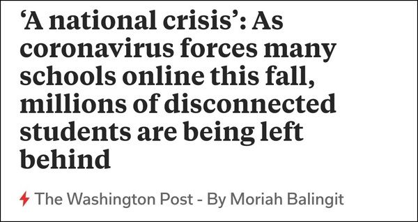 新冠疫情改变着每一个人的生活,对于部分低收入家庭及农村地区的美国学生而言,他们的感受或许更为深刻一些。因为在教学模式改为网络教学后,这些学生的家中没有电脑、没有高速网络,甚至于有极端者完全没有接入互联网,这便在无形中导致了学生之间的差距被拉大。