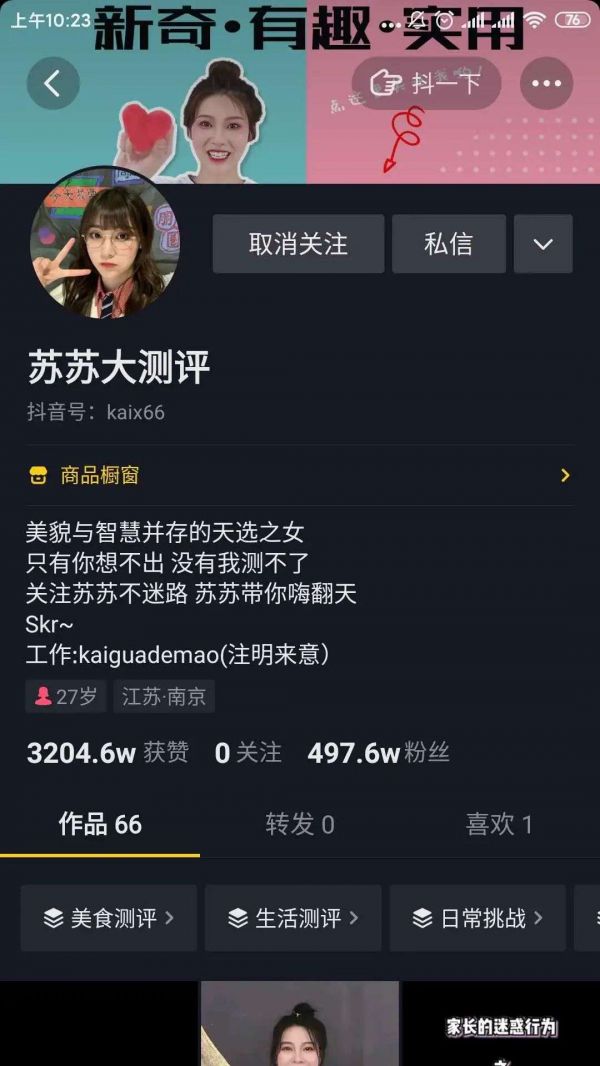 种草团队账号“苏苏大测评”以测评美食、开箱为主,通过新奇、有趣、实用的测评点吸引用户关注。“苏苏大测评”的粉丝总数目前接近500万,测评领域接触面较多,种草商品种类也复杂多样,也为她们带来更多的收益。