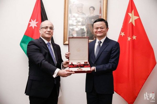 @虎嗅【马云获颁约旦国王一级卓越勋章】据虎嗅获悉,受约旦国王阿卜杜拉二世委托,约旦驻华大使胡萨姆·侯赛尼阁下于2020年8月18日晚在约旦驻华大使官邸为中国企业家俱乐部主席、马云公益基金会创始人、阿里巴巴合伙人马云颁发阿卜杜拉二世·本·侯赛因国王一级卓越勋章。
