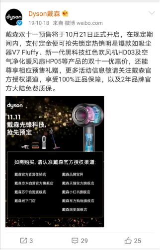 2019年11月,有网友发微博询问拼多多上的戴森产品是否靠谱,戴森官方微博@Dyson戴森直接回复道,拼多多并非戴森授权官方渠道,并配了一张图,列明戴森的官方渠道。