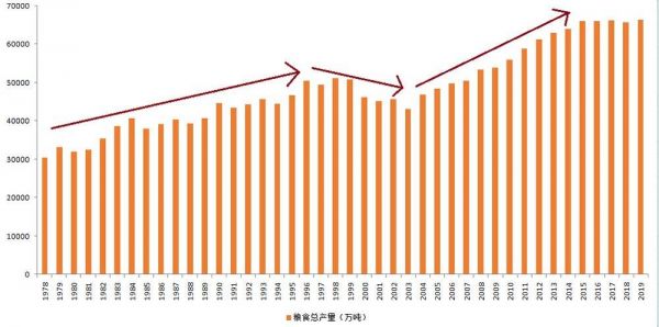 图:1978年-2019年中国粮食总产量,来源:国家统计局