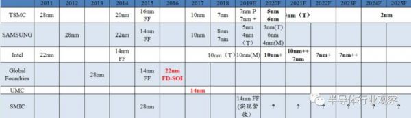 这些年来,随着行业资金不断扩大,技术壁垒持续增高,不仅十多年来没出现新的竞争玩家,而且随着制程分水岭的出现,越来越多的参与者从先进制程中“出局”。格芯在2018年宣布放弃7nm研发,联电在2018年宣布放弃12nm以下(即7nm及以下)的先进制程投资,因此保持先进制程研发的玩家仅剩行业龙头台积电、三星、英特尔等,以及处于技术追赶的中芯国际。