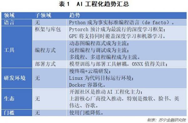 上文已经对人工智能数据、算力、算法层面进行了梳理和分析,最后我们看看工程化。工程化对于人工智能,如同厨具对于美味佳肴一样,是将数据、算力、算法结合到一起的媒介。