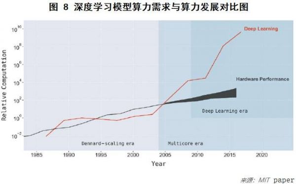 1. 根据OpenAI最新的测算,训练一个大型AI模型的算力,从2012年开始计算已经翻了30万倍,即年平均增长11.5倍,而算力的硬件增长速率,即摩尔定律,只达到年平均增速1.4倍;另一方面,算法效率的进步,年平均节省约1.7倍的算力。这意味着,随着我们继续追求算法性能的不断提升,每年平均有约8.5倍的算力赤字,令人担忧。一个实际的例子为今年最新发布的自然语义预训练模型GPT-3,仅训练成本已达到约1300万美元,这种方式是否可持续,值得我们思考。