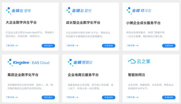金蝶云系列云产品,图源:金蝶国际官方网站