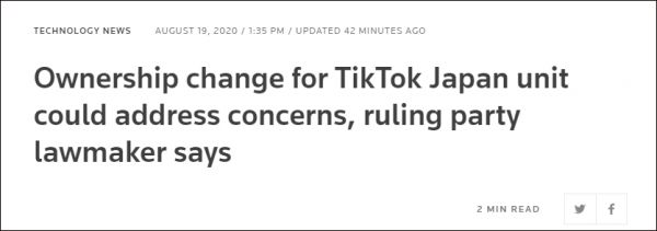 (原标题:日本自民党议员:变更TikTok日本业务所有权是选项之一)