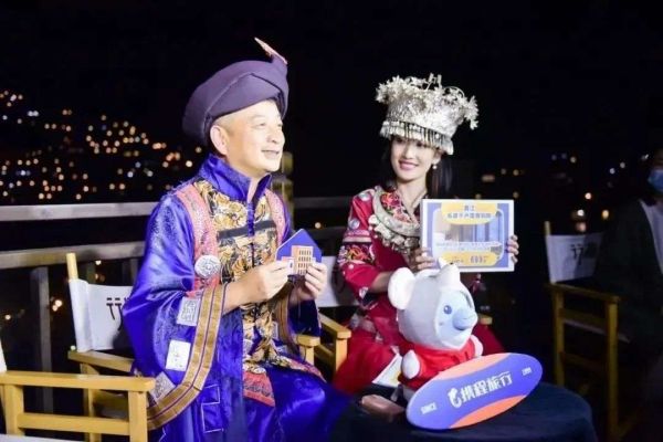 3 月 25 日,梁建章身着民族服饰为携程带货|极客公园