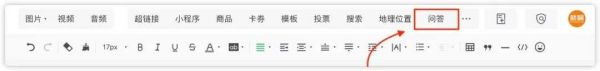 2. 问答组件—你可以在编辑器工具栏中点击问答组件,在图文中插入想要提问的问题。