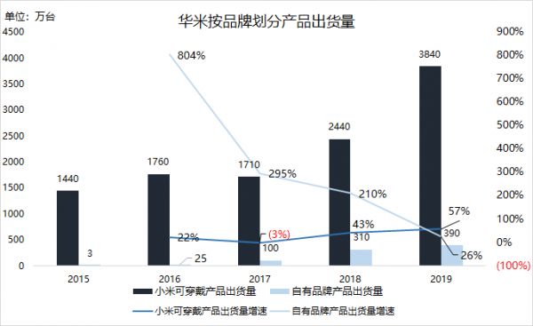 华米的自有品牌出货量及增速 制图:欧阳伟康