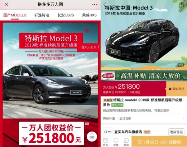 拼多多25万元团购特斯拉背后:真补贴还是营销秀?
