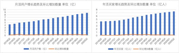 近4年来阿里巴巴季度月活用户和年活用户增长情况