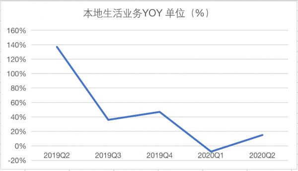 本地生活服务营收YOY%(主要为饿了么) 制图:36氪