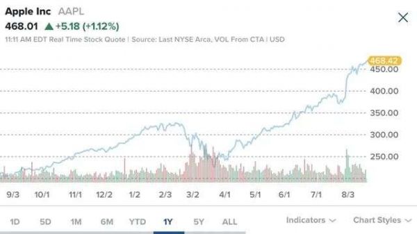 从1万亿美元到2万亿美元市值的里程碑,苹果仅花了两年时间。