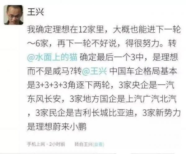 理想汽车CEO李想曾公开表示,“上百个新造车企业中,坚持到今天,从不拖欠员工工资,从不拖欠供应商的货款,这两个最基本最本分的能做到的估计已经不超过五个了。”而美团创始人王兴也在今年1月预判——国内最终只会剩下3家造车新势力:理想、蔚来、小鹏。