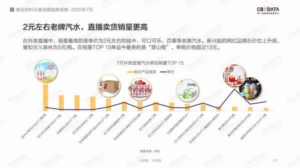 汽水的大热,也有赖于直播间的带货推广。根据短视频直播数据工具新抖的统计,7月仅抖音平台就有1645场汽水直播,环比6月增加了38.8%!