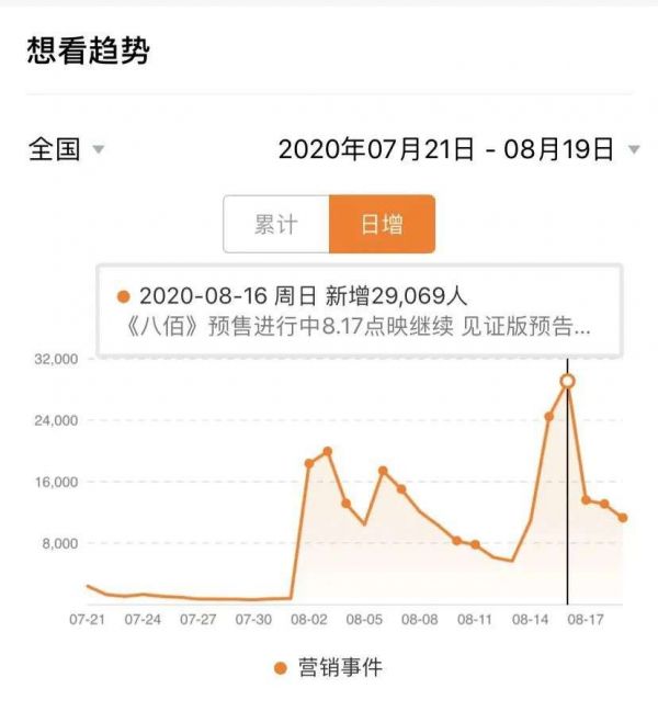 况且,点映时间集中在白领下班黄金段时间,口碑传播易于把控,《八佰》在点映期间的营销动作较少,几乎靠着口碑发酵带动票房增长。