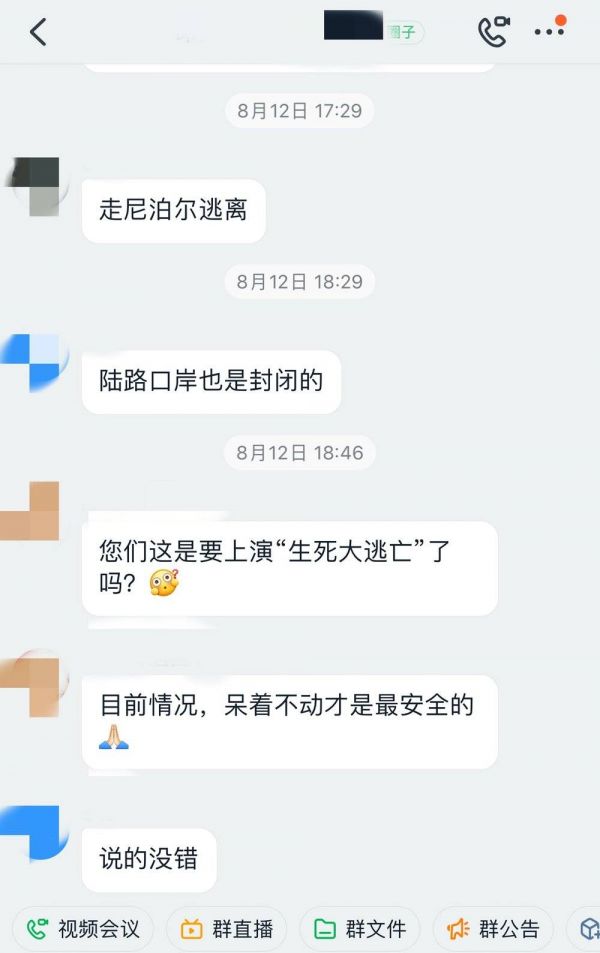 在交流过程中,有人还可以使用微信,有人已无法和家人通话,也有人表示不能聊太久,要用仅剩不多的流量和家人保持联系。