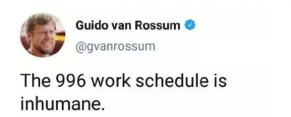 “Python之父”Guido van Rossum:“996工作制是不人道的。”