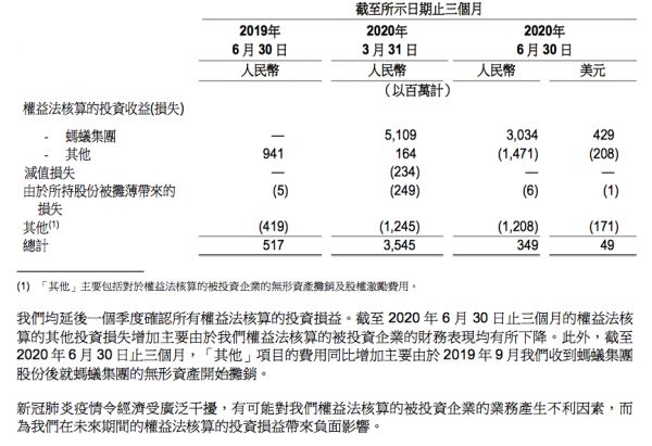 8月20日,阿里巴巴-SW(09988.HK)发布最新财报,根据延后一个季度确认所有权益法核算的投资损益安排,今年一季度,阿里巴巴投资蚂蚁集团获得的收益为30.34亿元。按照阿里巴巴持有蚂蚁集团33%的股权计算,一季度蚂蚁集团盈利约为92亿元人民币。