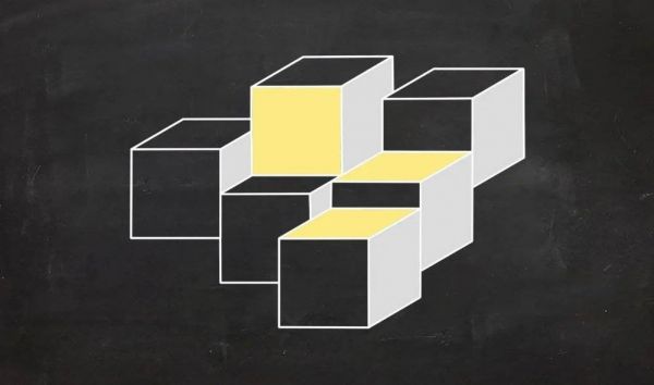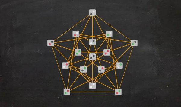 由4个骰子组成的完全彼此连接的小集合。| 图片参考来源:Quanta Magazine