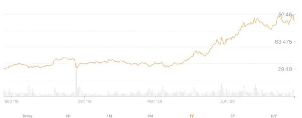 拼多多最近一年股价走势