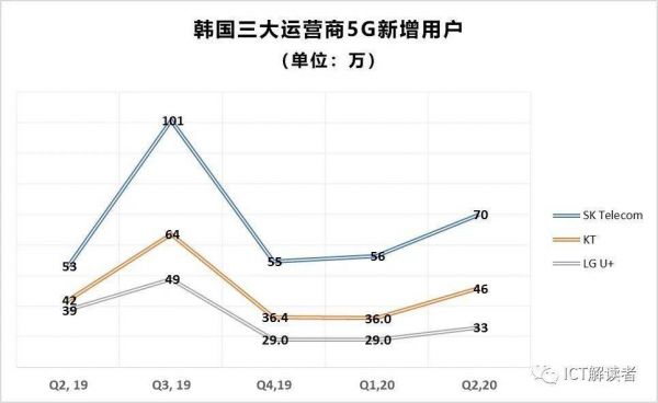 然而时间进入2020年,一方面受全球新冠肺炎疫情的影响,另一方面韩国大干快上5G节奏下被遮掩的问题逐渐显露,韩国三大运营商SK Telecom(SK电信), Korea Telecom (韩国电信,简称KT) 与LG U+在其2020年二季度财报里公布的5G发展状况疲态尽现,韩国孜孜以求的5G领先故事也快要讲不下去了。