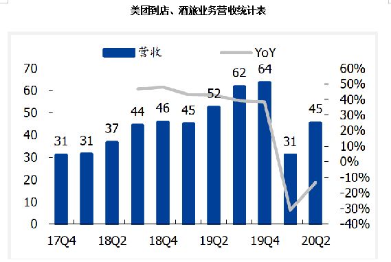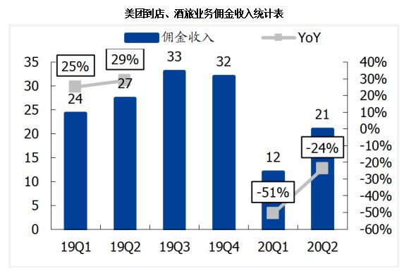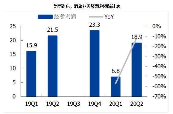 2020年Q2季度美团到店、酒店及旅游业务经营溢利占比,来源美团财报