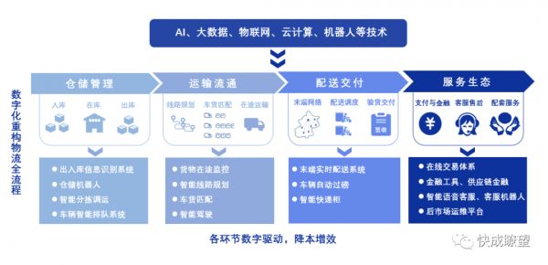 物流作为链接高度数字化的消费互联网和传统生产制造的过渡地带,天然就是数字化技术推进的前哨。从物流设施与生产环节分散管理、依赖人工控制的传统物流到生产与物流系统合理化、信息化管理的现代物流,物流行业的发展趋势正是利用传感器、物联网、AI、自动仓库和自动驾驶等智能技术,实现物流行业的标准化、一体化、智能化。