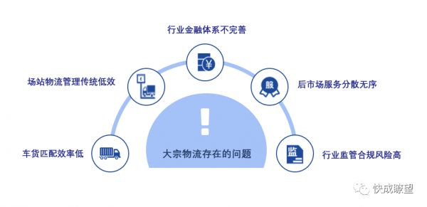 在物流行业的数字化进程中,以消费品为主的产成品物流最先站在了行业高地,与消费品物流相比,以大宗商品为代表的生产资料物流可以称得上是数字物流的蛮荒之地,但其却连接了能源、钢铁、冶金、化工、纺织、食品、材料、建筑等几乎所有传统行业的生产制造节点,与国民经济各个门类都高度相关,看似远离互联网但其实转型迫切。接下来,我们将探讨传统大宗物流在向数字化升级中存在的重点问题和以“快成模式”为代表的大宗物流数字化解决方案。