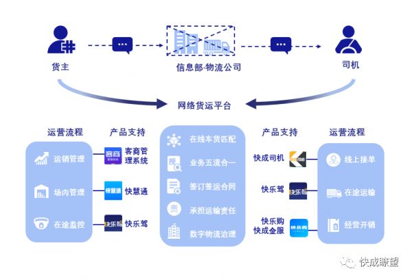 推出“快成司机”,打破司机和货主的信息壁垒,帮助司机快捷省时地在线上接单、并享有订单查询、运费结算、常跑线路、挂车审验等多样化服务,从而提高运输组织效率、降低运输成本和返程空载率;此外平台担保运费回款,为司机提供保险服务。