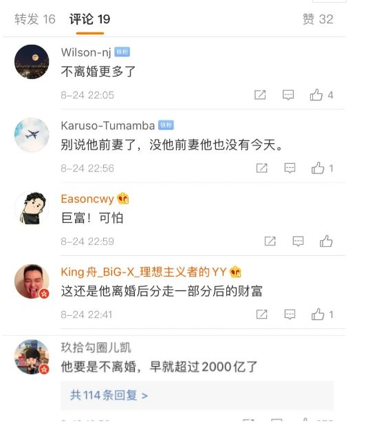 有网友表示:他要是不离婚,早就超过2000亿美元了。