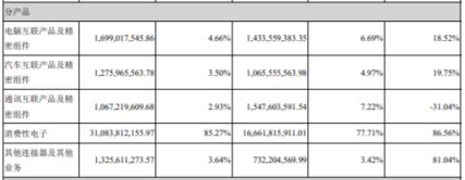 分业务来看,公司上半年业绩高速增长主要原因是占营收大头(85.27%)的消费性电子产品继续维持高双位数(86.56%)增长。