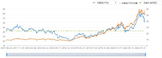 多重利好消息之下,立讯精密的股价和估值也从四月份开始发力狂奔,目前近70X的滚动市盈率远高于近三年平均42X滚动市盈率。