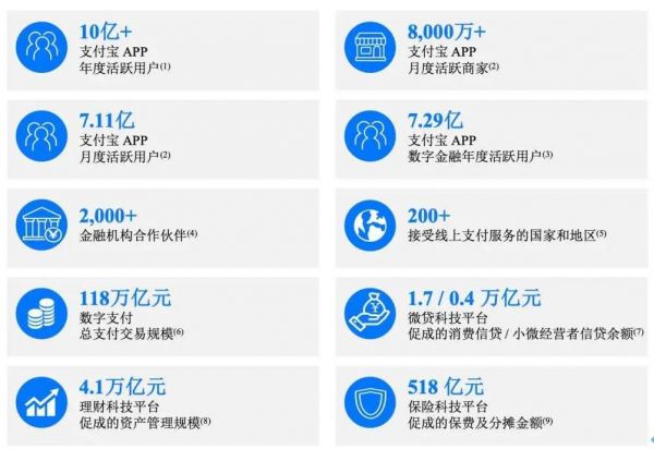 截至目前,支付宝APP服务超过10亿用户和超过8,000万商家,合作金融机构超过2000家,为全球最大的生活服务/商业类APP。