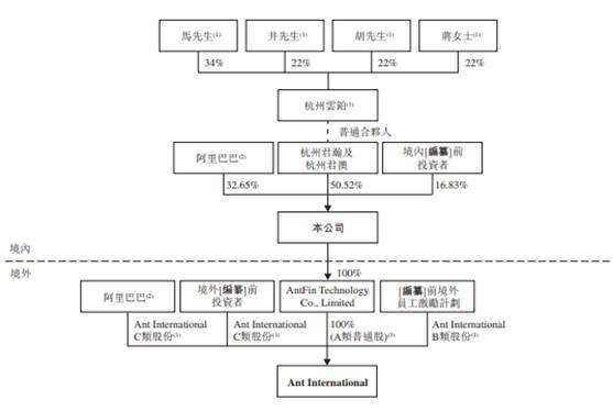 招股书显示,蚂蚁集团的主要股东包括杭州君瀚、杭州君澳和阿里巴巴集团等阿里系资本,三者合计占股83.17%。