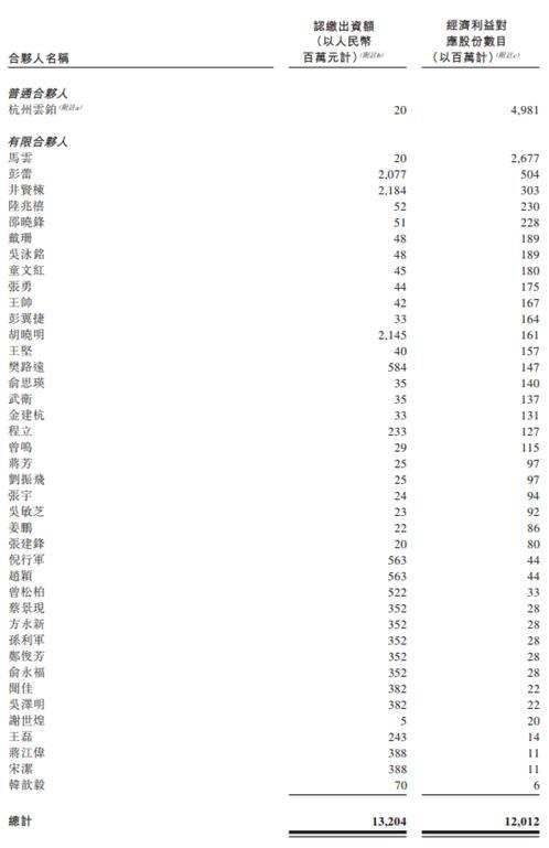 与此同时,蚂蚁集团还披露了杭州君瀚与杭州君澳的直接及间接合伙人股份对应经济利益情况,马云、彭蕾、井贤栋、张勇、俞永福等人,均出现在名单中。