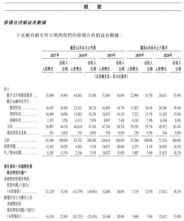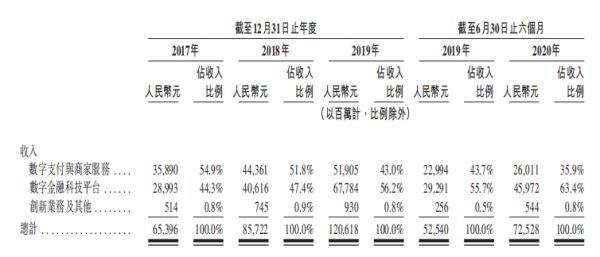 可以从招股书里明显看到的是,蚂蚁的主要收入来源是“数字支付与商家服务”,以及“数字金融科技平台”两大部分。