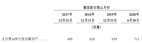 发展至今,从用户数据的角度看,根据蚂蚁招股书,截至2020年6月30日,支付宝APP的月度活跃用户为7.11亿。