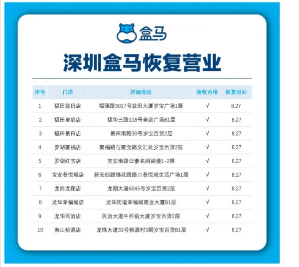 (原标题:深圳盒马将首批恢复10家门店线上线下服务)