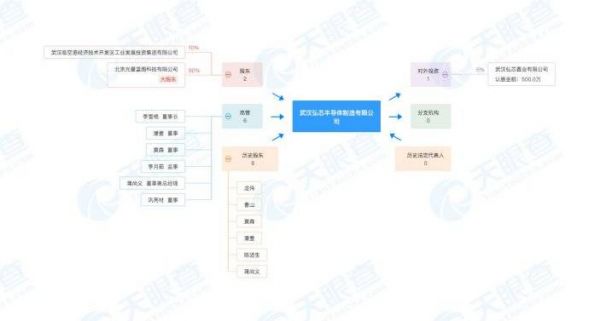 武汉弘芯目前有两大股东,北京光量蓝图科技有限公司持股90%,认缴出资18亿元,穿透后股东为两名自然人李雪艳、莫森,李雪艳目前担任武汉弘芯董事长,莫森担任董事。