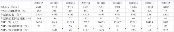 截至2020年6月30日的12个月,平台年活跃买家数6.832亿,单季新增5510万,创上市以来最大单季增幅。移动客户端平均月活用户数5.688亿,较去年同期增长55%,较一季度单季净增8140万,单季增幅创历史新高。另一方面,平台活跃买家平均年消费额1857元,较去年同期增长27%。