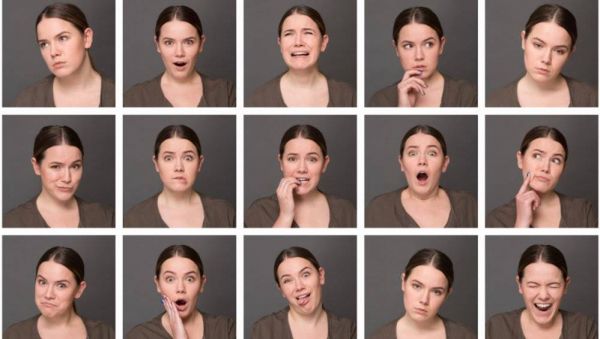 数以百计的人脸图像出现在屏幕上,一个接着一个。有的眼睛圆睁,有的眉头紧锁,有的开怀大笑,有的抿紧嘴唇。